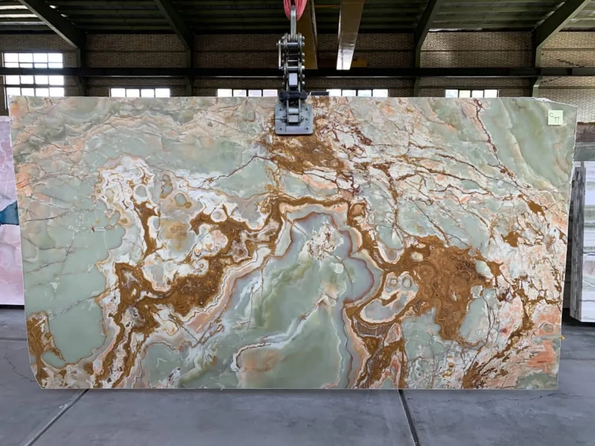 سنگ مرمر سبز اصفهان: با تم رنگی سبز روشن و هاله های سفید