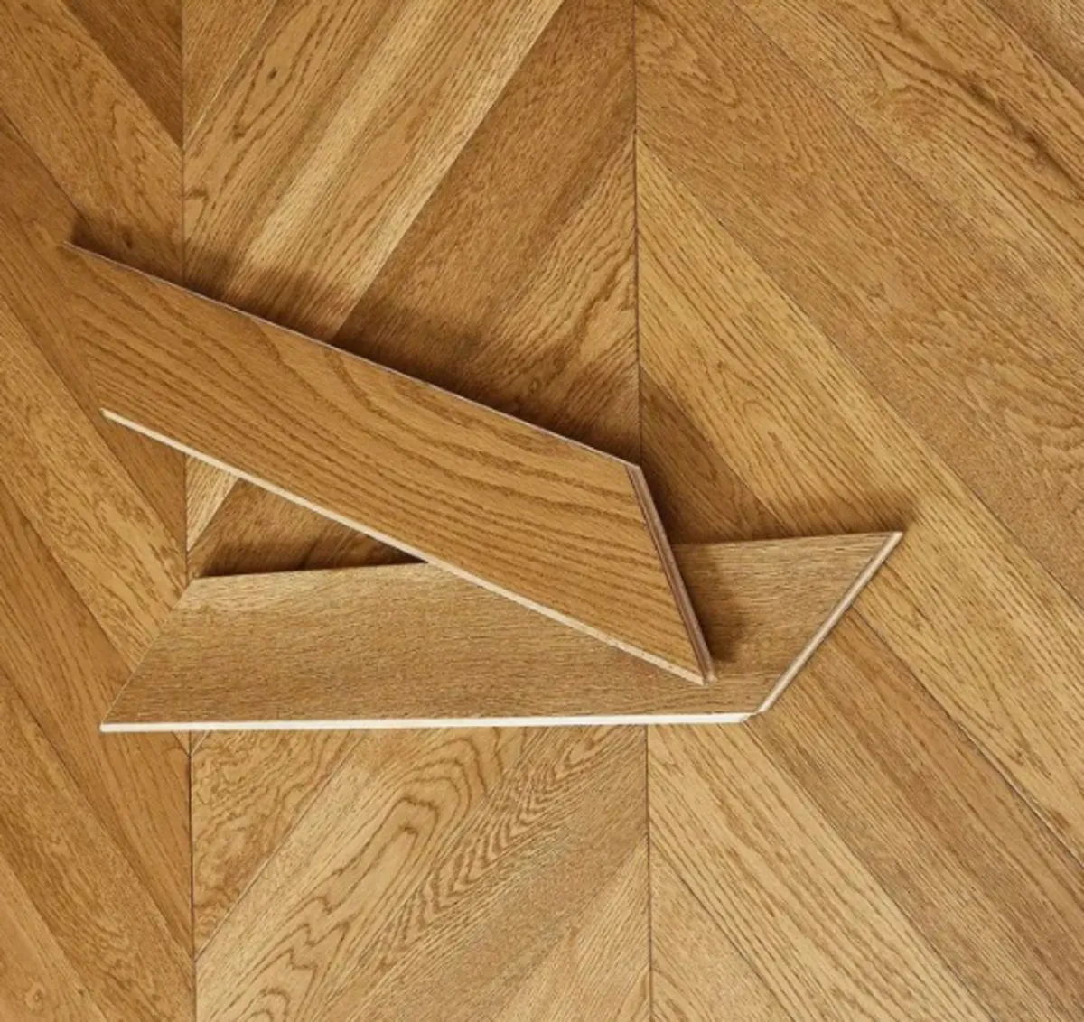 فضای منزل یا دفتر کارتان را با تنالیته رنگی مدرن و خاص پارکت بلوط شورون، دیزاین کنید. تایلهای پارکت شورون این مدل چنان به هم می رسند که خطوط حاصله، مانند پارکت الواری ظاهر می شوند. پارکت شورون بلوط فینیش روغن طبیعی، کاملا حس پویا به فضا می بخشد. رنگ و فینیش این پارکت، در حالیکه کاملا بصورت یک لایه محافظ عمل می کند، در عین حال جلوه ای کاملا طبیعی در فضای منزل شما دارد. طول تایلهای این پارکت 78.4 و عرض آن 9.8 سانتیمتر است. ترکهای سطحی این پارکت کاملا پر شده و قطعا به ارزش بصری آن افزوده است.